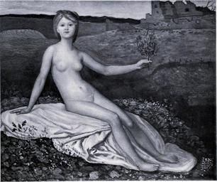 | Keywords: Puvis de Chavannes - L'Esperance.jpg Artwork Creator Pierre-Cécile Puvis de Chavannes fr L'Espérance variante dénudée Les Arts revue mensuelle des musée salons expositions online scanned reproduction http //www archive org/stream/lesartsrevuemens1912pariuoft page/380/mode/2up Other versions <gallery> File Pierre-Cécile Puvis de Chavannes 007 jpg Similar painting with clothed figure and different landscape </gallery> PD-old-100 Paintings of nude sitting females Puvis Paintings of nude females in nature Puvis Black and white reproductions of paintings in color Puvis Pierre Puvis de Chavannes |