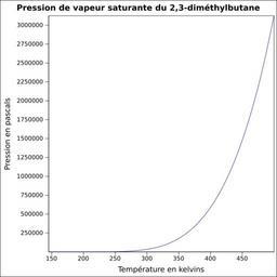 Keywords: Pvs 2,3-diméthylbutane.svg fr Pression de vapeur saturante calculée d'après Robert H Perry et Donald W Green Perry's Chemical Engineers' Handbook McGraw-Hill USA 1997 7e éd 2400 p ISBN 0-07-049841-5 p 2-50 own Epop 2010-06-24 Created with Gnumeric Vapor-Liquid equilibrium curves |