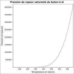 Keywords: Pvs butan-2-ol.svg fr Pression de vapeur saturante calculée d'après <br/> Robert H Perry et Donald W Green Perry's Chemical Engineers' Handbook McGraw-Hill USA 1997 7e éd 2400 p ISBN 0-07-049841-5 p 2-50 own Epop 2010-06-24 Created with Gnumeric Vapor-Liquid equilibrium curves |