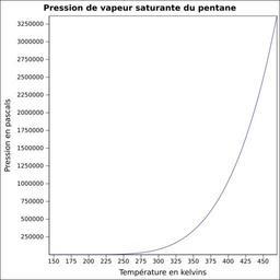 | Keywords: Pvs pentane.svg fr Pression de vapeur saturante calculée d'après <br/> Robert H Perry et Donald W Green Perry's Chemical Engineers' Handbook McGraw-Hill USA 1997 7e éd 2400 p ISBN 0-07-049841-5 p 2-50 own Epop 2010-06-24 Created with Gnumeric Vapor-Liquid equilibrium curves |