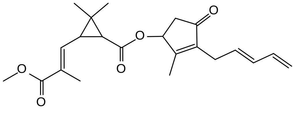 Keywords: Pyrethrin2.svg structure of pyrethrine II ingredient of pyrethrum and pyrethrine eigene Arbeit/own work BKchem 2008-02-09 Blech Pyrethroids