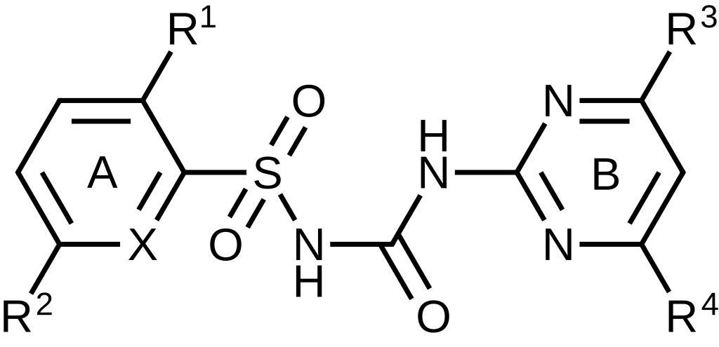 Keywords: Pyrimidinylsulfonylurea herbicides.svg en Pyrimidinylsulfonylurea herbicides a class of sulfonylurea herbicides 2014-11-15 own 0x0077BE other versions cc-zero Uploaded with UploadWizard Sulfonylurea herbicides
