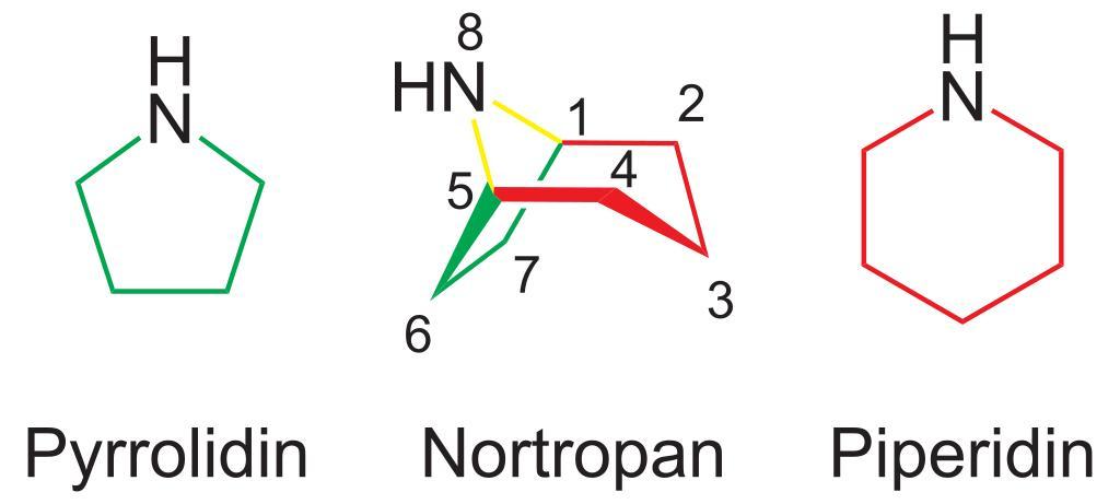 Keywords: Pyrrolidin Tropan Piperidin.svg Vergleich der Strukturen von Pyrrolidin Nortropan und Piperidin Comparison of the structures of pyrrolidine nortropane and piperidine Comparaison des structures de la pyrrolidine du nortropane et de la pipéridine own 2007-04-07 NEUROtiker Own work all rights released Public domain Piperidine Pyrrolidine Tropane |