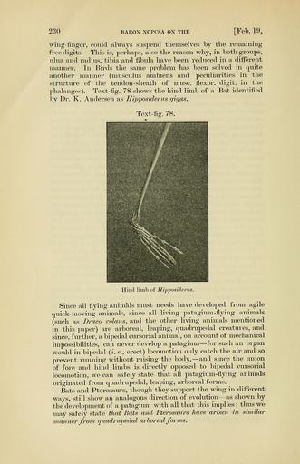 | Keywords: PZSL1907Page230.png Hipposiderus gigas sic Hipposideros gigas <small>Wagner 1845</small> en Giant Roundleaf Bat leg skeleton Proceedings of the Zoological Society of London http //archive org/details/proceedingsofzoo19071446zool vol 1907 issue 1 http //archive org/stream/proceedingsofzoo19071446zool page/230/mode/1up page 230 1907 Baron Nopcsa text PD-old PZSL 1907-1 Hipposideros gigas Bat bones Mammal legs Ferenc Nopcsa | ||||