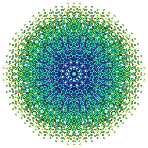 | Keywords: Quadrirectified 4 21 polytope Coxeter plane.svg en wikipedia 2011 October 16 Gosset 4_21_polytope graph in Coxeter plane vertices only overlaps by color 8 16 24 32 48 64 96 120 128 192 288 07 36 19 February 2010 UTC I Tom Ruen talk created this work entirely by myself <br />Transferred from http //en wikipedia org en wikipedia Tom Ruen talk en wikipedia Tomruen Original upload log page en wikipedia Quadrirectified_4_21_polytope_Coxeter_plane svg 2010-02-19 07 36 Tomruen 800×800 282374 bytes <nowiki> Quadrirectified Gosset 4_21_polytope graph in Coxeter plane vertices only overlaps by color 8 16 24 32 48 64 96 120 128 192 288 I ~~~ created this work entirely by myself ~~~~</nowiki> Set of colored Coxeter plane graphs; many vertices |