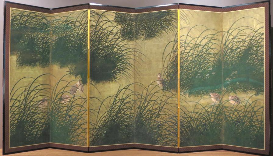 Keywords: 'Quail amid Autumn Grasses and Flowers', Momoyama period, LACMA.JPG en Quail amid Autumn Grasses and Flowers Tosa school Momoyama period 1573-1615 six-panel screen ink color and gold leaf on paper LACMA own Creator Unknown Momoyama period 1573-1615 Japanese screens in the Los Angeles County Museum of Art Paintings of the Azuchi “Momoyama period Tosa school paintings Cc-zero |