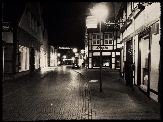 Keywords: quakenbrück germany old town evening black and white illuminated homes mood night