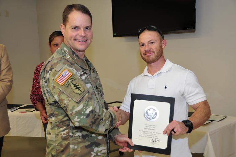 Keywords: fort a. p. hill fortaphill awards army awards armyawards employees governmernt employees governmerntemployees army employees armyemployees groupshot people indoor LTC Andrew Q. Jordan, commander, U.S. Army Garrison, Fort A.P. Hill, and his leadership team hosted the installation's quarterly awards ceremony, Oct. 18. The installation workforce gathered at the Training Support Center and joined in recognizing some 50 employees for time in service, meritorious achievement and dedication to the installation's mission. Hooah! LTC Andrew Q. Jordan, commander, U.S. Army Garrison, Fort A.P. Hill, and his leadership team hosted the installation's quarterly awards ceremony, Oct. 18. The installation workforce gathered at the Training Support Center and joined in recognizing some 50 employees for time in service, meritorious achievement and dedication to the installation's mission. Hooah!