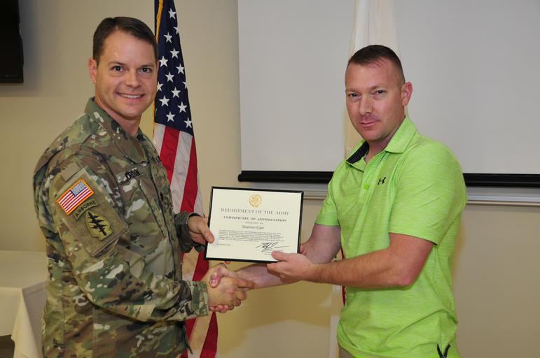 Keywords: fort a. p. hill fortaphill awards army awards armyawards employees governmernt employees governmerntemployees army employees armyemployees people groupshot indoor LTC Andrew Q. Jordan, commander, U.S. Army Garrison, Fort A.P. Hill, and his leadership team hosted the installation's quarterly awards ceremony, Oct. 18. The installation workforce gathered at the Training Support Center and joined in recognizing some 50 employees for time in service, meritorious achievement and dedication to the installation's mission. Hooah! LTC Andrew Q. Jordan, commander, U.S. Army Garrison, Fort A.P. Hill, and his leadership team hosted the installation's quarterly awards ceremony, Oct. 18. The installation workforce gathered at the Training Support Center and joined in recognizing some 50 employees for time in service, meritorious achievement and dedication to the installation's mission. Hooah!