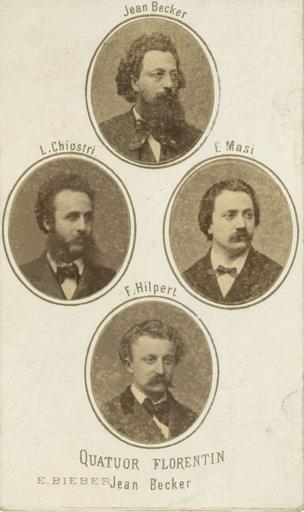 MAKE A MEME View Large Image Bieber Date/place: Unknown date/Hamburg Subject: Quatuor Florintin Medium: Photgraphic posetive Notes: Quatuor Florentin with L. Chiostri, E. Masi, F. Hilbert and Jean Becker 1. violinist. He was born in Mannheim 11.05. 1833 - dead in ...