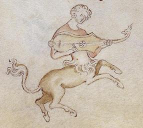 | Keywords: Queen Mary Psalter centaur playing citole.jpg en Centaur playing a citole from the w Queen Mary Psalter This image is important for showing the neck with perspective showing that it was not the thick neck of some citoles Cropped version of the Wikipedia image https //commons wikimedia org/wiki/File Queen_Mary_Psalter_centaur_and_monkey_playing_citole_and_trumet jpg 1320-01-01 https //commons wikimedia org/wiki/File Queen_Mary_Psalter_centaur_and_monkey_playing_citole_and_trumet jpg author other versions http //www bl uk/catalogues/illuminatedmanuscripts/ILLUMIN ASP Size mid IllID 53635 From Queen Mary psalter Wikipedia article The psalter was perhaps produced c 1310 “1320 by one main scribe and unusually for a work so heavily illuminated a single artist 4 who is now known as the Queen Mary Master It was probably made in London and possibly for Isabella of France queen of Edward II of England 5 though there is no agreement on the matter 4 For the next two hundred years its history is not known A note in a sixteenth-century hand indicates that it was owned by an Earl of Rutland and though it does not identify the earl it appears likely that it was Henry Manners A Protestant he was imprisoned in May 1553 which may explain how the psalter landed in the possession of Queen Mary a second note in Latin explains that the psalter was impounded by Baldwin Smith a customs officer and thus remained in England 6 It remained in the possession of Queen Mary and her successors until 1757 when George II donated the Old Royal Library to the British Museum 3 PD-Art Queen Mary Psalter 1310-1320 - BL Royal MS 2 B VII Citole Instruments in art Medieval miniatures of musicians Medieval miniatures of centaurs Mythological creatures Lute family instruments Guitar family instruments String instruments in art |
