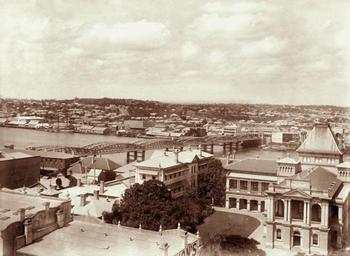 | Keywords: Queensland State Archives 2292 View of Brisbane from chimney of Bartons Electric Works and vicinity of City Hall c 1897.png  en View of Brisbane from chimney of Bartons Electric Works and vicinity of City Hall This photograph makes a panorama with Digital Image ID 2291 1897 http //www archivessearch qld gov au/Image/DigitalImageDetails aspx ImageId 2292 Preferred citation Queensland State Archives Digital Image ID 2292 ID label 1108482 http //www archivessearch qld gov au/Search/AgencyDetails aspx AgencyID 1993 Lands Department Survey of Lands Branch Photographic Branch en Copyright expired Information field Decade 1890-1899 Information field Place en Brisbane City Information field Keywords en Historic buildings Information field Material Type en Photographic material Information field Type en Image PD-Australia QSA media uploaded by User 99of9 Photographic material from the Queensland State Archives Brisbane in the 1890s Brisbane CBD Landscapes of Queensland Second Victoria Bridge Brisbane Brisbane River Old Supreme Court Building Brisbane Panoramics in Queensland |