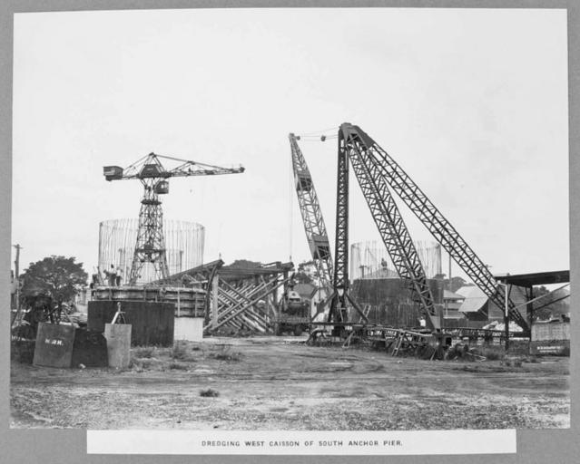 | Keywords: Queensland State Archives 3250 Dredging west caisson of south anchor pier 3 March 1936.png en Dredging west caisson of south anchor pier Story Bridge construction 1936-03-03 http //www archivessearch qld gov au/Image/DigitalImageDetails aspx ImageId 3250 Preferred citation Queensland State Archives Digital Image ID 3250 ID label 1176028 http //www archivessearch qld gov au/Search/AgencyDetails aspx AgencyID 1995 Lands Department Survey Office Cartographic Branch Photographic Section en Copyright expired Information field Decade 1930-1939 Information field Place en Brisbane City Information field Material Type en Photographic material Information field Type en Image PD-Australia QSA media uploaded by User 99of9 Photographic material from the Queensland State Archives 1936 in Queensland Story Bridge construction Caisson engineering |