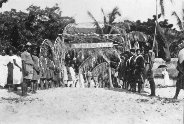 | Keywords: Queensland State Archives 5768 Welcome for Hon J C Peterson Home Secretary Murray Island Torres Strait Island June 1931.png en Welcome for Hon J C Peterson Home Secretary Murray Island Torres Strait Island 1931-06 http //www archivessearch qld gov au/Image/DigitalImageDetails aspx ImageId 5768 Preferred citation Queensland State Archives Digital Image ID 5768 ID label 1435000 http //www archivessearch qld gov au/Search/AgencyDetails aspx AgencyID 123 Home Secretary's Office en Copyright expired Information field Decade 1930-1939 Information field Place en Torres Strait Island Region Information field Material Type en Photographic material Information field Type en Image PD-Australia QSA media uploaded by User 99of9 Photographic material from the Queensland State Archives 1931 in Queensland James Christian Peterson Torres Strait Islanders Welcome arches in Queensland Murray Islands |