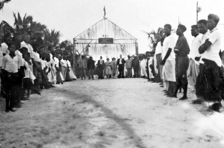 | Keywords: Queensland State Archives 5773 Hon J C Peterson Home Secretary and party with residents of Coconut Island Torres Strait Island June 1931.png en Hon J C Peterson Home Secretary and party with residents of Coconut Island Torres Strait Island 1931-06 http //www archivessearch qld gov au/Image/DigitalImageDetails aspx ImageId 5773 Preferred citation Queensland State Archives Digital Image ID 5773 ID label 1435007 http //www archivessearch qld gov au/Search/AgencyDetails aspx AgencyID 123 Home Secretary's Office en Copyright expired Information field Decade 1930-1939 Information field Place en Torres Strait Island Region Information field Material Type en Photographic material Information field Type en Image PD-Australia QSA media uploaded by User 99of9 Photographic material from the Queensland State Archives 1931 in Queensland James Christian Peterson Coconut Island Torres Strait Islanders Welcome arches in Queensland |