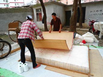 Keywords: Quilt making 09.JPG en Blanket making in Haikou Hainan People's Republic of China Quilt makers place a mat over a layer of cotton covered by a lattice of thread This is in preparation to compact the layer by pressing down upon it with a heavy wooden disk 2012-01-19 own Anna Frodesiak cc-zero Uploaded with UploadWizard Quilting in Haikou Files by User Anna Frodesiak Outdoor workers in China People at work in China |