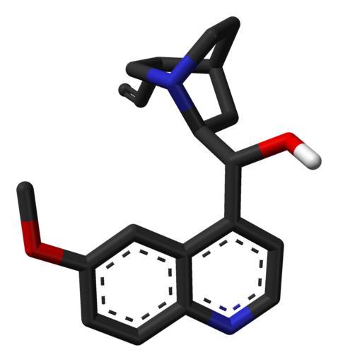 Keywords: Quinine-3D-sticks-skeletal.png Stick model of the quinine molecule as found in the crystalline form X-ray diffraction data from cite journal B Pniewska and A Suszko-Purzycka Structure of quinine monohydrate toluene solvate 1989 Acta Crystallographica Section C 45 4 638-642 10 1107/S0108270188013204 own 2008-03-01 Ben Mills Benjah-bmm27 Images by Ben Mills Quinine |
