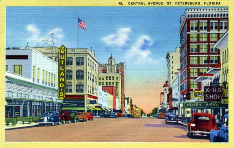 Keywords: florida state library and archives of florida statelibraryandarchivesofflorida central avenue (st. petersburg, fla.) centralavenuestpetersburgfla st. petersburg stpetersburg pinellas county pinellascounty 1930s architecture postcards postcard collection postcardcollection buildings street scenes streetscenes classic cars classiccars automobiles cars classic automobiles classicautomobiles sky flags clouds outdoor Persistent URL: floridamemory.com/items/show/161769 Local call number: PC3870 Title: "Central Avenue, St. Petersburg, Florida" Date: ca. 1930 Physical descrip: 1 postcard - col. - 9 x 14 cm. Series Title: Postcard Collection Repository: State Library and Archives of Florida 500 S. Bronough St., Tallahassee, FL, 32399-0250 USA, Contact: 850.245.6700, Archives@dos.myflorida.com Persistent URL: floridamemory.com/items/show/161769 Local call number: PC3870 Title: "Central Avenue, St. Petersburg, Florida" Date: ca. 1930 Physical descrip: 1 postcard - col. - 9 x 14 cm. Series Title: Postcard Collection Repository: State Library and Archives of Florida 500 S. Bronough St., Tallahassee, FL, 32399-0250 USA, Contact: 850.245.6700, Archives@dos.myflorida.com |