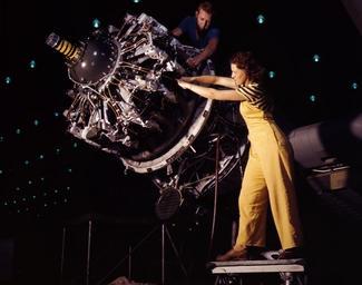| Keywords: R-1830 engine on C-47 at factory 1942.jpg  LargeImage Assembly of Pratt Whitney R-1830 engines on Douglas C-47 Skytrain aircraft Training of a female worker at the Douglas Aircraft Company Long Beach California USA in October 1942 LOC-image fsac 1a35357 1942-10 Alfred T Palmer U S Farm Security Administration - Office of War Information Collection no known restrictions on publication frame removed PD-USGov Women at work in California Rosie the Riveter California Arms California Females looking left California Profile views of females California Standing females California Men at work in California Photographs by Alfred T Palmer at the Douglas Aircraft Plant in Long Beach California October 1942 Women at work in the United States in World War II Pratt Whitney R-1830 Douglas C-47 Skytrain USAAF Bib overalls Men and women at work Women facing left and looking left World War II color photographs of the US Homefront History of industry in California |