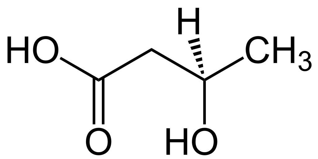 (R)-3-Hydroxybutyric acid Structural Formula.svg (258x129)