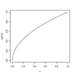 | Keywords: R-basic sqrt plot example.svg en An example of probably the simplest plot that can be produced in R own HYanWong 2009-01-13 Created with R using the following commands <pre> svg R-basic_sqrt_plot_example svg 4 4 8 plot sqrt dev off </pre> Images with R source code Square root graphs |