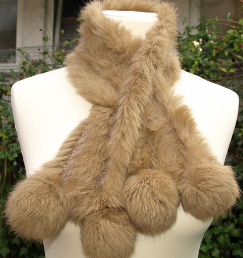 Keywords: Rabbit fur scarf.jpg Schal aus gefärbten Kaninfellstreifen in Flechttechnik Dyed Rabbit fur scarf own 2010 Libricool <span class signature-talk >talk</span> 08 24 10 October 2010 UTC Rabbit clothing Fur scarves Fur fashion in 2010