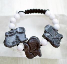 Keywords: rabbit grey white jasper jade bracelet stone beads cord handmade semiprecious skulls heads gem gemstones jewelry jewel jewellery black bunny
