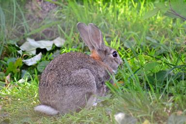 Keywords: rabbit wild european oryctolagus cuniculus adult mammal fur bob tail grey-brown leporidae grass