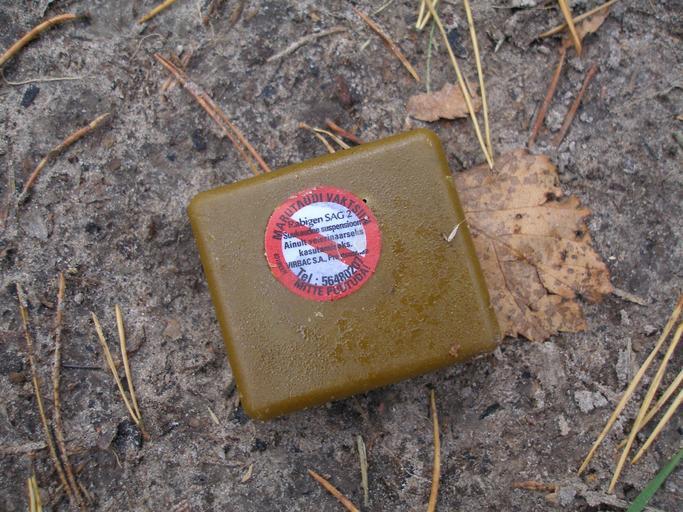 | Keywords: Rabies vaccine in bait.jpg en Rabies vaccine in a bait for wildlife vaccination Randomly found in a forest in Põhja-Kõrvemaa Nature Reserve Estonia the same day the baits had been distributed in the area from an airplane The text on the bait says Oral solution For veterinary use only Do not touch own Hannu 2007-09-29 59 19 19 N 25 40 11 E Oral vaccination against rabies Rabies vaccines Baits Põhja-Kõrvemaa Nature Reserve | ||||