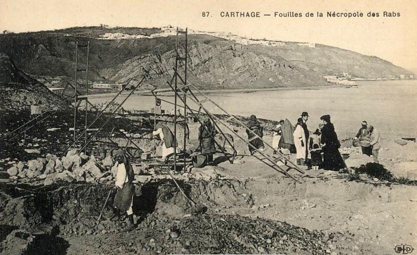 | Keywords: Rabs fouilles.jpg fr fouilles de la nécropole des Rabs à Carthage 2015-10-08 Carte postale ancienne début 20e transmis par Bertrand Bouret avec autorisation Inconnu mais début 20e siècle other versions PD-Art Uploaded with UploadWizard Postcards of Carthage Archaeological site of Carthage Sidi Bou Said Archaeological excavations in Tunisia |