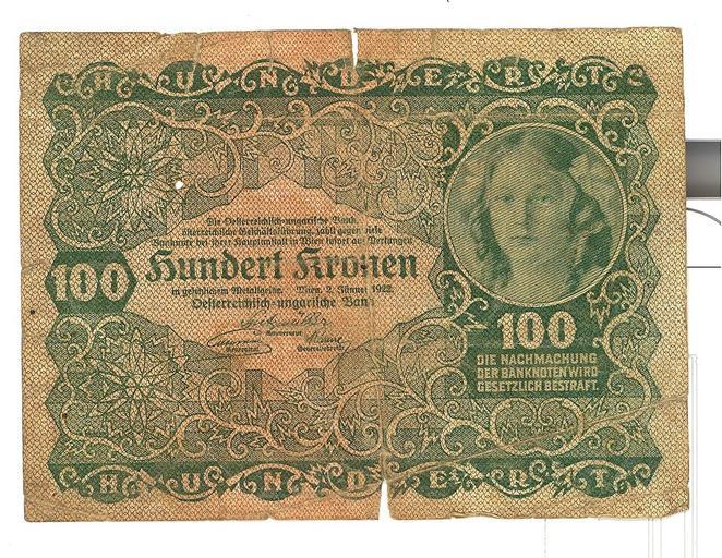 | Keywords: Raccolta di Carlo Bettanin, item 9.jpg Ricordi di famiglia - fotografia del soldato Egidio Ferrante appartenente al corpo fotografi del Regio esercito italiano morto nel 1921 per ferite riportate durante il conflitto Era stato ferito presso un ponte sul fiume Tagliamento durante la ritirata di Caporetto - cartolina postale di guerra viaggiata 22 aprile 1921 L ™ultima cartolina spedita da Egidio Ferrante dal sanatorio - cartolina postale di guerra viaggiata 11 dicembre 1915 La cartolina fa riferimento alla data di partenza per la zona di guerra - serie di banconote austroungariche alcune costituiscono le ultime emissioni di banconote da parte della Zecca Imperiale - copia originale della rivista austroungarica Osterreichs Illustrierte Zeitung 30 aprile 1916 archivio di famiglia - manufatto braccialetto realizzato da una corona di forzamento in rame di una granata lavorata finemente e incisa riportante la seguente iscrizione ricordo Pasubio 26-7-17m - coltello con rebbio ricavato da corona di forzamento Di granata lavorato a metĂ e rinvenuto presso la Baracca Comando di Bocchetta Campiglia della 33° Compagnia del 5° Reggimento Genio che realizzò la Strada delle 52 Gallerie del Monte Pasubio exhibition history object history object type Europeana 1914-1918 Copyright information Europeana 1914-1918 PD-own upload Europeana claims no rights in its digitisation in accordance with its http //pro europeana eu/publications/the-europeana-public-domain-charter Public Domain charter Europeana 1914-1918 project place of creation place of discovery http //www europeana1914-1918 eu/en/contributions/6236 Raccolta di Carlo Bettanin item 9 Uploaded with GWToolset Raccolta di Carlo Bettanin item 9 http //www europeana1914-1918 eu/attachments/70800/6236 70800 full jpg World War I Europeana 1914-1918 batch upload needs checking Banknotes of Austria-Hungary Banknotes with a face value of 100 |