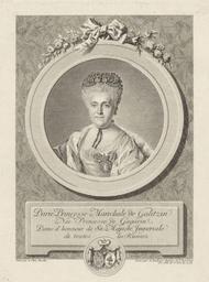 | Keywords: Radigues - D A Golitsina (nee Gagarina) engraving 1778.jpg Artwork Creator Antoine Radigues Creator Alexander Roslin langSwitch Depicted with a miniature portrait of Empress Catherine II in the frame Изоб ажена с миниатю ным по т етом Екате ины II в оп аве inscription Peint par Chev Roslin bottom left inscription Gravé par A Radigues Aggrégé de ľAcad Imp des Arts de St Peterbg 1778 bottom right langSwitch on pedestal на пъедестале 1778 Etching engraving cm 26 7 19 9 print is cropped / лист об езан Institution Pushkin Museum Accession number ГР-2301 Object history langSwitch collection of D Rovinsky St-Petersburg ; Rumyantsevsky Museum from 1898 ; in the Pushkin Art Museum from 1924 cоб ание Д А Ровинского Санкт-Пете бу г ; Румянцевский музей с 1898 ; в Г ИИ с 1924 portrait of AM Galitzin Является па ной г авю ой к по т ету А Голицына http //www russianprints ru/files/1614_600 jpg russianprints ru cropped rotated by uploader http //www russianprints ru/printmakers/r/radigue_antoinne/portrait_daria_golitzina shtml orig desc other versions PD-old-100 DEFAULTSORT 1778; Darya Alexeievna Galitzine Antoine Radigues Works after Alexander Roslin Daria Alekseevna Golitsyna Gagarina 1770s engravings 1770s portraits of Russia female 18th-century engraved oval portraits of women at bust length 18th-century engraved oval portraits of women at half length 18th-century round portraits of women Collection of Dmitriy Rovinsky Ermine clothing in art Female hair fashion in art Females with chokers in art Signs of Russian Empresses diamond portrait |