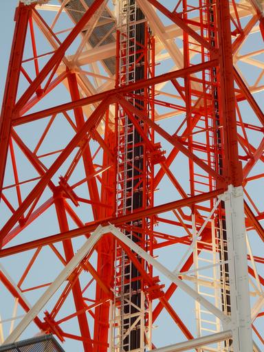 Keywords: radio tower radio mast greened transmission tower metal strut iron architecture white red