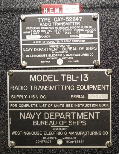 View Original: | Radio Transmitter Model TBL-13, US Navy, Westinghouse - National Electronics Museum - DSC00254.JPG (3443x4427) | |||