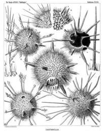 | Keywords: Radiolaria (Challenger) Plate 113.jpg follows <table> <tr> <td style text-align center; vertical-align top; colspan 3 >Plate 113 Castanellida </td> </tr> <tr> <td style font-size 85 ; text-align right; vertical-align top; colspan 3 >Diam </td> </tr> <tr> <td style vertical-align top; >Fig 1 Castanissa challengeri n sp </td> <td style vertical-align bottom; >×</td> <td style text-align right; vertical-align bottom; >100</td> </tr> <tr> <td style font-size 85 ; padding-left 3em; text-indent -1em; vertical-align top; >In the lower part of the figure is visible the large corona of teeth around the mouth a </td> </tr> <tr> <td style vertical-align top; >Fig 2 Castanidium moseleyi n sp </td> <td style vertical-align bottom; >×</td> <td style text-align right; vertical-align bottom; >80</td> </tr> <tr> <td style font-size 85 ; padding-left 3em; text-indent -1em; vertical-align top; >In the upper part of the figure at left is visible the irregular polygonal mouth a </td> </tr> <tr> <td style vertical-align top; >Fig 3 Castanopsis naresi n sp </td> <td style vertical-align bottom; >×</td> <td style text-align right; vertical-align bottom; >80</td> </tr> <tr> <td style font-size 85 ; padding-left 3em; text-indent -1em; vertical-align top; >In the upper part of the figure is visible the smooth circular mouth a </td> </tr> <tr> <td style vertical-align top; >Fig 4 Castanura tizardi n sp </td> <td style vertical-align bottom; >×</td> <td style text-align right; vertical-align bottom; >80</td> </tr> <tr> <td style font-size 85 ; padding-left 3em; text-indent -1em; vertical-align top; >Fig 4a A single main-spine of the same </td> <td style vertical-align bottom; >×</td> <td style text-align right; vertical-align bottom; >400</td> </tr> <tr> <td style vertical-align top; >Fig 5 Castanidium murrayi n sp </td> <td style vertical-align bottom; >×</td> <td style text-align right; vertical-align bottom; >100</td> </tr> <tr> <td style font-size 85 ; padding-left 3em; text-indent -1em; vertical-align top; >With a large phæodium partly protruded through the circular mouth </td> </tr> <tr> <td style font-size 85 ; padding-left 3em; text-indent -1em; vertical-align top; >Fig 5a A single main-spine of the same hexagonally dimpled </td> <td style vertical-align bottom; >×</td> <td style text-align right; vertical-align bottom; >400</td> </tr> <tr> <td style vertical-align top; >Fig 6 Castanella wyvillei n sp </td> <td style vertical-align bottom; >×</td> <td style text-align right; vertical-align bottom; >100</td> </tr> <tr> <td style font-size 85 ; padding-left 3em; text-indent -1em; vertical-align top; >A piece of the shell with the mouth armed with six large teeth a </td> </tr> <tr> <td style vertical-align top; >Fig 7 Castanidium buchanani n sp </td> <td style vertical-align bottom; >×</td> <td style text-align right; vertical-align bottom; >100</td> </tr> <tr> <td style font-size 85 ; padding-left 3em; text-indent -1em; vertical-align top; >A piece of the shell with the smooth roundish mouth a </td> </tr> </table> https //archive org/details/reportonradiolar00haecrich 1887 Ernst Haeckel 1834-1919 ; engravings by Adolf Giltsch 1852-1911 PD-old-auto-1923 1919 Report on the Radiolaria |