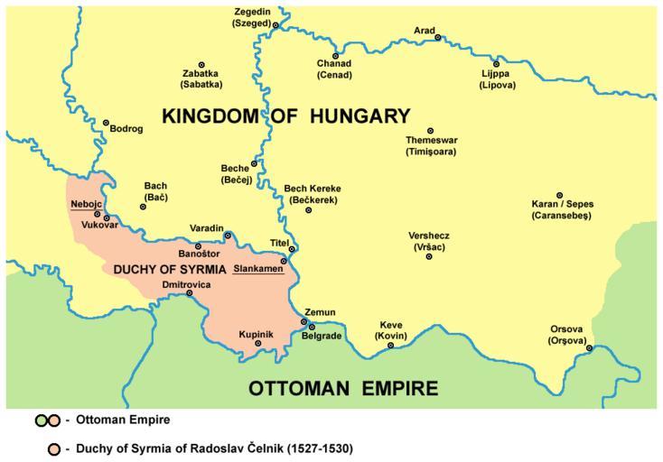| Keywords: Radoslav celnik01.png English historic map - Duchy of Syrmia of Radoslav Čelnik 1527-1530 - English language version Serbian исто ијска ка та - С емско војводство Радослава Челника 1527-1530 године - ве зија на енглеском језику 2009-03-16 own assumed PANONIAN References Veselin P Dželetović Poslednji srpski car - Jovan Nenad Poeta - Beograd 2007 Dr Aleksa Ivić Istorija Srba u Vojvodini Novi Sad 1929 Drago Njegovan Prisajedinjenje Vojvodine Srbiji Novi Sad 2004 Dr Dušan J Popović Srbi u Vojvodini knjiga 1 Novi Sad 1990 Vladimir Ćorović Ilustrovana istorija Srba knjiga četvrta Beograd 2006 The Times History of Europe Times Books 2002 http //www crohis com/ssrkulj2/mohac htm http //www hervardi com/images/slovenijeh039 jpg http //www croatia-in-english com/images/maps/1606 jpg Source and licence self made map by user PANONIAN Voivodeship of Syrmia of Radoslav Čelnik Maps of the Ottoman period in the history of Serbia Maps of the history of Vojvodina Maps of the history of Syrmia Maps of vassal states of the Ottoman Empire |