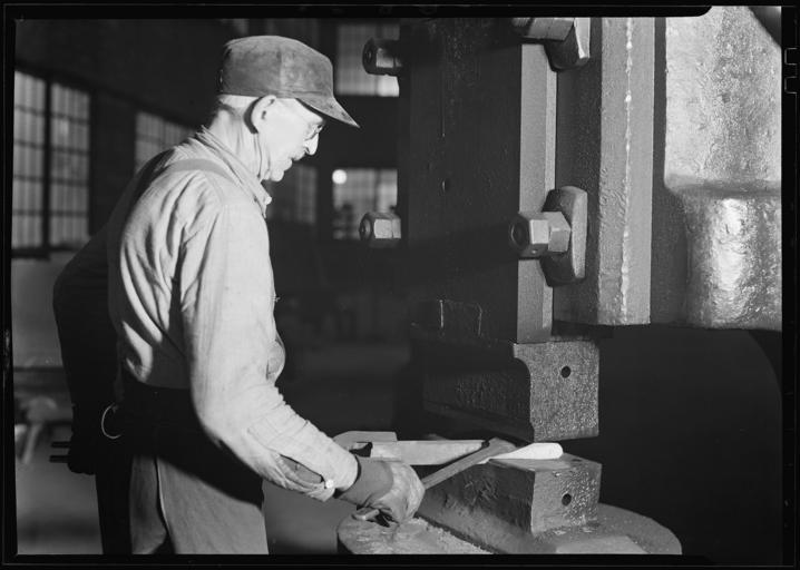 | Keywords: nara:arcid=518728 u.s. national archives usnationalarchives lewis hine lewishine baldwin locomotive works baldwinlocomotiveworks baldwin locomotive baldwinlocomotive forge blackandwhite monochrome photo border people indoor black and white Original Caption: Eddystone, Pennsylvania - Railroad parts. Baldwin Locomotive Works. Blacksmith forging and hammering tools, March 1937 U.S. National Archives’ Local Identifier: 69-RP-541 Photographer: Hine, Lewis Subjects: The New Deal Tennessee Valley Authority Works Progress Administration Work Portraits The Great Depression Persistent URL: research.archives.gov/description/518728 Repository: Still Picture Records Section, Special Media Archives Services Division (NWCS-S), National Archives at College Park, 8601 Adelphi Road, College Park, MD, 20740-6001. For information about ordering reproductions of photographs held by the Still Picture Unit, visit: www.archives.gov/research/order/still-pictures.html Reproductions may be ordered via an independent vendor. NARA maintains a list of vendors at www.archives.gov/research/order/vendors-photos-maps-dc.html Access Restrictions: Unrestricted Use Restrictions: Unrestricted Original Caption: Eddystone, Pennsylvania - Railroad parts. Baldwin Locomotive Works. Blacksmith forging and hammering tools, March 1937 U.S. National Archives’ Local Identifier: 69-RP-541 Photographer: Hine, Lewis Subjects: The New Deal Tennessee Valley Authority Works Progress Administration Work Portraits The Great Depression Persistent URL: research.archives.gov/description/518728 Repository: Still Picture Records Section, Special Media Archives Services Division (NWCS-S), National Archives at College Park, 8601 Adelphi Road, College Park, MD, 20740-6001. For information about ordering reproductions of photographs held by the Still Picture Unit, visit: www.archives.gov/research/order/still-pictures.html Reproductions may be ordered via an independent vendor. NARA maintains a list of vendors at www.archives.gov/research/order/vendors-photos-maps-dc.html Access Restrictions: Unrestricted Use Restrictions: Unrestricted |