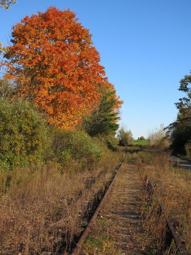 Keywords: railroad track train abandoned rail fall rusty old rural desolate railway autumn