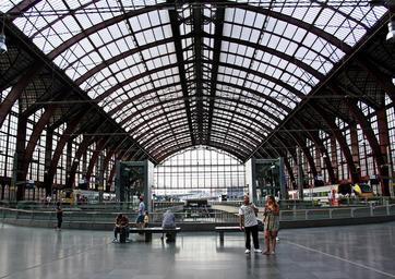 Keywords: railway station concourse hall trains train railway central station travel architecture farewell departure gleise traffic platform rail traffic building arrival travellers those arriving by train round roof iron iron construction steel steel structure glass railroad track