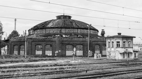 Keywords: railway station train railway gleise tracks seemed old railway line broken off the beaten track leave traffic rail traffic black and white city wasteland catenary historically