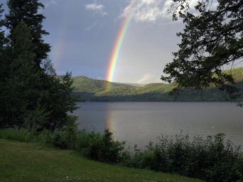 Keywords: rainbow canim lake british columbia canada thunderstorm scenery landscape weather clouds beautiful sky mood nature hill