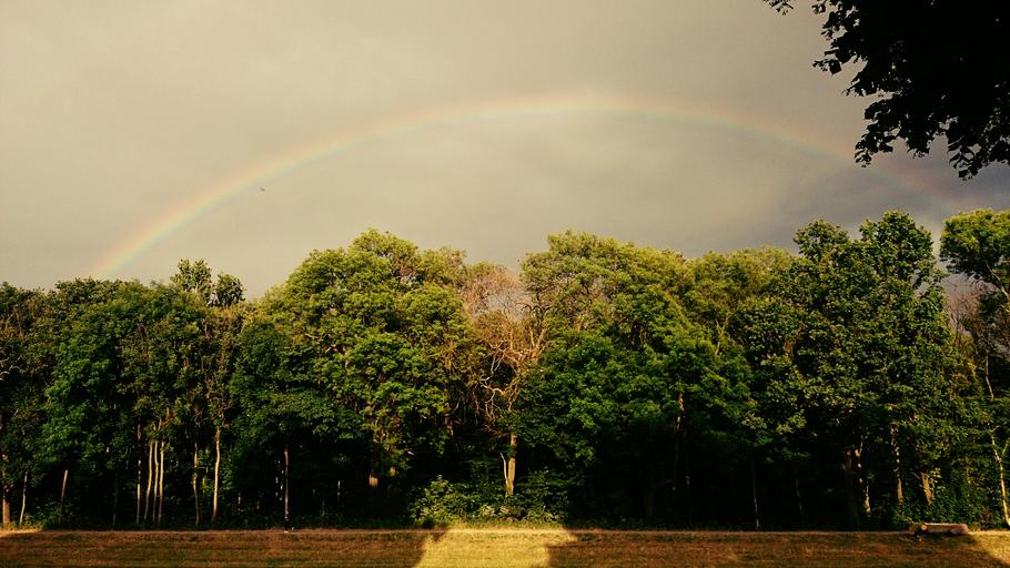 Keywords: rainbow summer nature landscape trees color leipzig saxony river gewitterstimmung weather storm clouds storm thunderstorm dusk mood abendstimmung evening nature sky