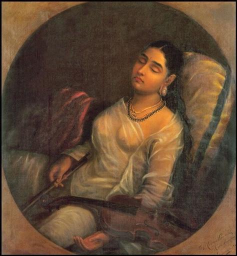 | Keywords: Raja Ravi Varma, Lady Resting on the Pillow.jpg Artwork Creator Raja Ravi Varma Lady Resting on the Pillow A lady half-asleep while playing w violin വി വയലിൻ വായിച്ചുകൊണ്ടിരിക്കെ പാതിമയക്കത്തിലായ വനിത Oil on canvas Collection of Dr M A Chidambaram Chennai Tamilnadu object history credit line accession number http //www museumsyndicate com/item php item 25502 Malayalam loves Wikimedia event 2011 April PD-Art-100 Paintings of women of Kerala by Raja Ravi Varma Female musicians from Kerala Violins in paintings Musicians by Raja Ravi Varma Transparent saris Female musicians in art of India Sleeping women in India Portraits of women of Kerala by Raja Ravi Varma |