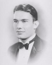 Keywords: Ralph Keller 1938.jpg en Ralph Keller in 1938 College Photo own Family Photo 1938 Male hair fashion Black and white photographic portraits of men Men facing left and looking left People with bow ties
