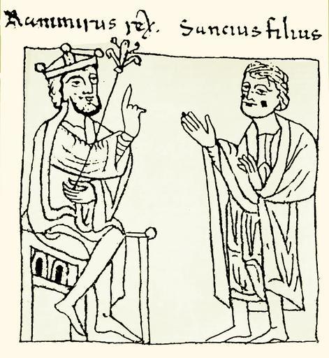 Keywords: Ramiro I y Sancho Ramírez.jpg es Ramiro I de Aragón y su hijo Sancho Ramírez Miniatura del siglo XIII de Jaca Huesca Aragón España http //www derechoaragones es/es/catalogo_imagenes/grupo cmd posicion 63 path 1457 config_zoom S presentacion pagina Author siglo XIII Ramiro I coloreado jpg Ramiro I of Aragon in miniature Sancho Ramírez in miniature PD-Art europe in the 13th century |