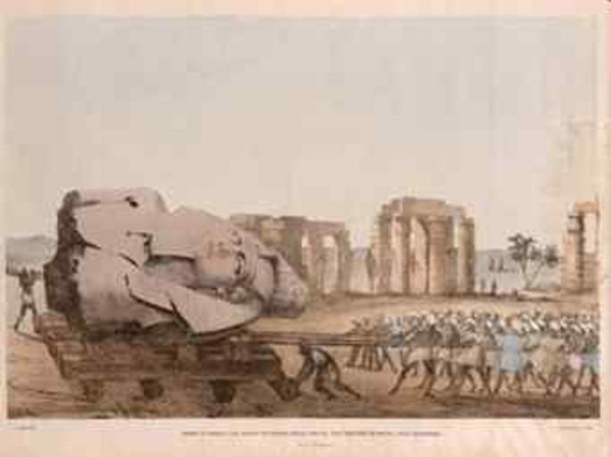 Keywords: Rammess in the sledge.jpg en They moved the huge statue of Ramesses III aka 'The Younger Memnon' from Egypt to the British Museum Giovanni Battista Belzoni 1778-1823 Head of a colossal Egyptian statue being removed for shipment to the British Museum Hand colored lithograph 2014-12-11 Belzoni Giovanni Battista 1778-1823 Narrative of the operations and recent discoveries within the pyramids temples tombs and excavations in Egypt and Nub London John Murray 1822 Belzoni Giovanni Battista 1778-1823 PD-old-100 other versions Uploaded with UploadWizard Giovanni Battista Belzoni |