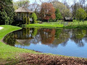 Keywords: rams woerthe steenwijk pond lake water park pavilion reflection glassy calm