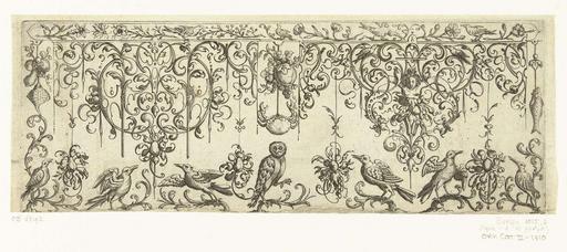 Keywords: Randdecoratie met bladranken en drie zeedieren.jpeg accession number https //hdl handle net/10934/RM0001 COLLECT 451208; RP-P-OB-6342 Creator Henry Le Roy Le Roy Henry 1579 1651 printmaker Tegenzijdige kopie naar de bladen 6 en 7 uit de serie Somige Eenvoldige Vruchten en Spitsen Midden onder zit een uil daarboven hangt een krab Uit serie bladen waarop telkens twee motieven naast elkaar te zien zijn aangevuld met vogels insecten bloempotten en soms een ornamentele rand met ranken en dieren ; Iconclasscode 48A986; Iconclasscode 25F34; Iconclasscode 25F716 CRAB ; print; ornamentprent mm 78 mm 211 exhibition history Institution Rijksmuseum paper; engraving object history object type print; ornamentprent PD-old-100 place of creation place of discovery https //www rijksmuseum nl Randdecoratie met bladranken en drie zeedieren Uploaded with GWToolset Randdecoratie met bladranken en drie zeedieren http //lh4 ggpht com/OdBV06RH47XdZPrIUParFBTK6Q8V01AQhq6LKqacn-MewwESId0EVxTYFkwuwpw4uQX-XPrGvAGaqVgIlShnRpy-ow s0 Prints in the Rijksmuseum Amsterdam Unidentified birds in the collection of the Rijksmuseum Amsterdam Birds in art Public domain GWToolset Batch UploadBirdwatching Rijksmuseum |