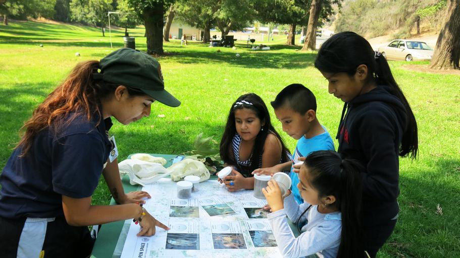 Keywords: youth outdoor people Ranger Leslie shows children how to use scat to identify which animal it could have came from. Ranger Leslie shows children how to use scat to identify which animal it could have came from.