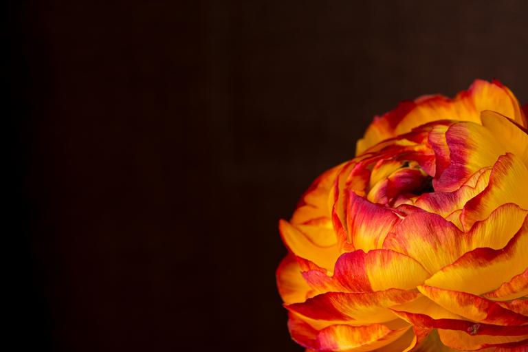 Keywords: ranunculus flower blossom bloom orange yellow red petals close spring flower schnittblume text freedom
